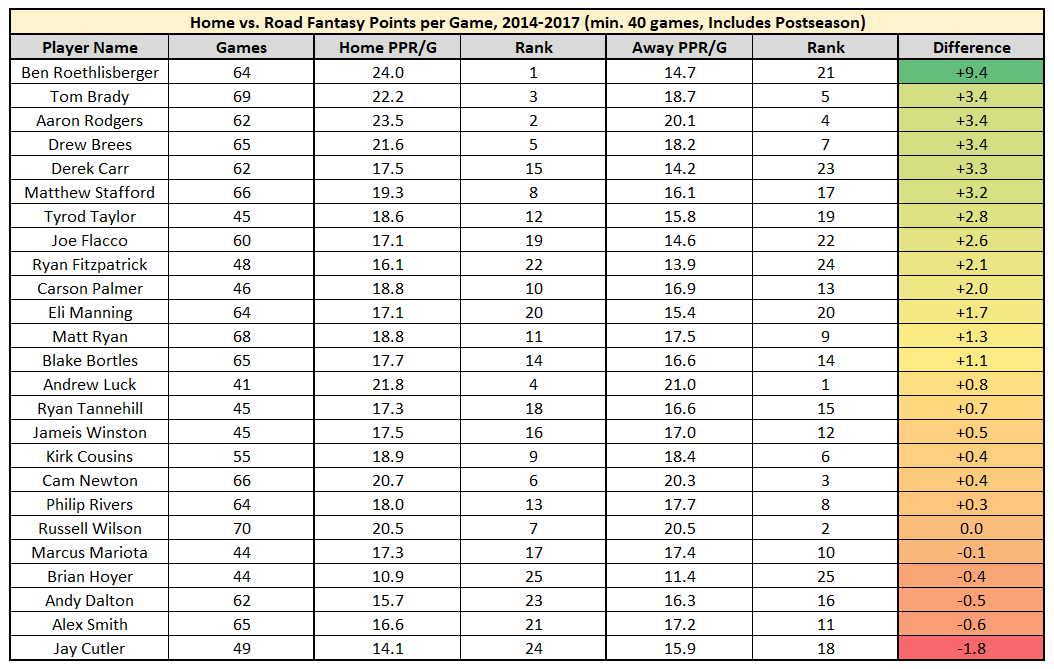His passer rating at home is 98.6, compared to 89.0 on the road.